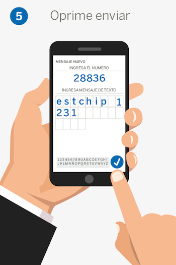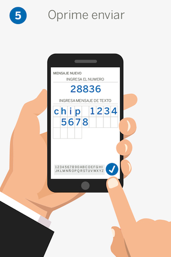 Envía al 28836 la palabra chip (espacio) número de tu tarjeta (espacio) y tu NIP.