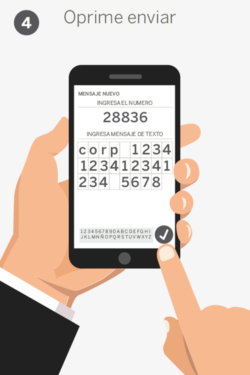 Envía al 28836 la palabra corp (espacio) y los 16 números de tu tarjeta (espacio) y tu número de empleado.